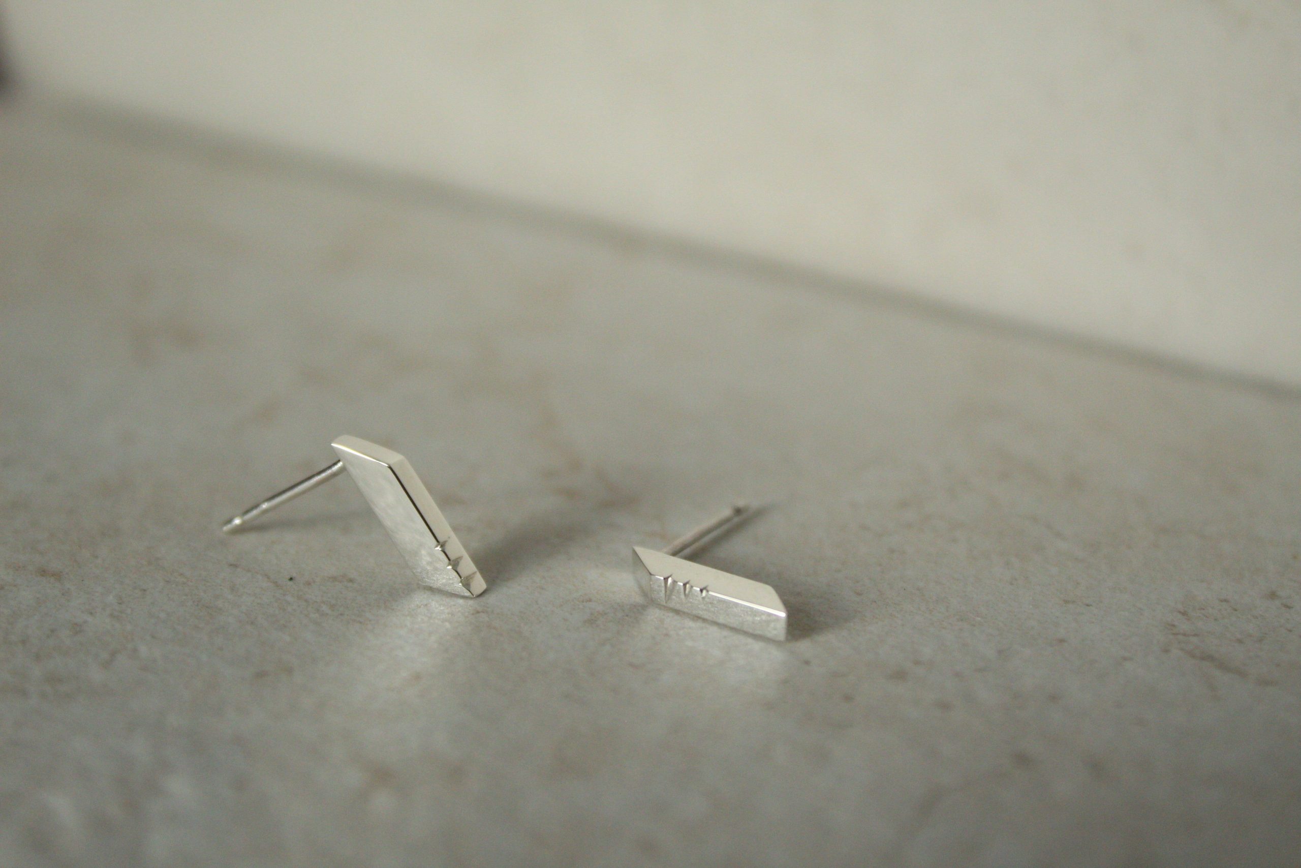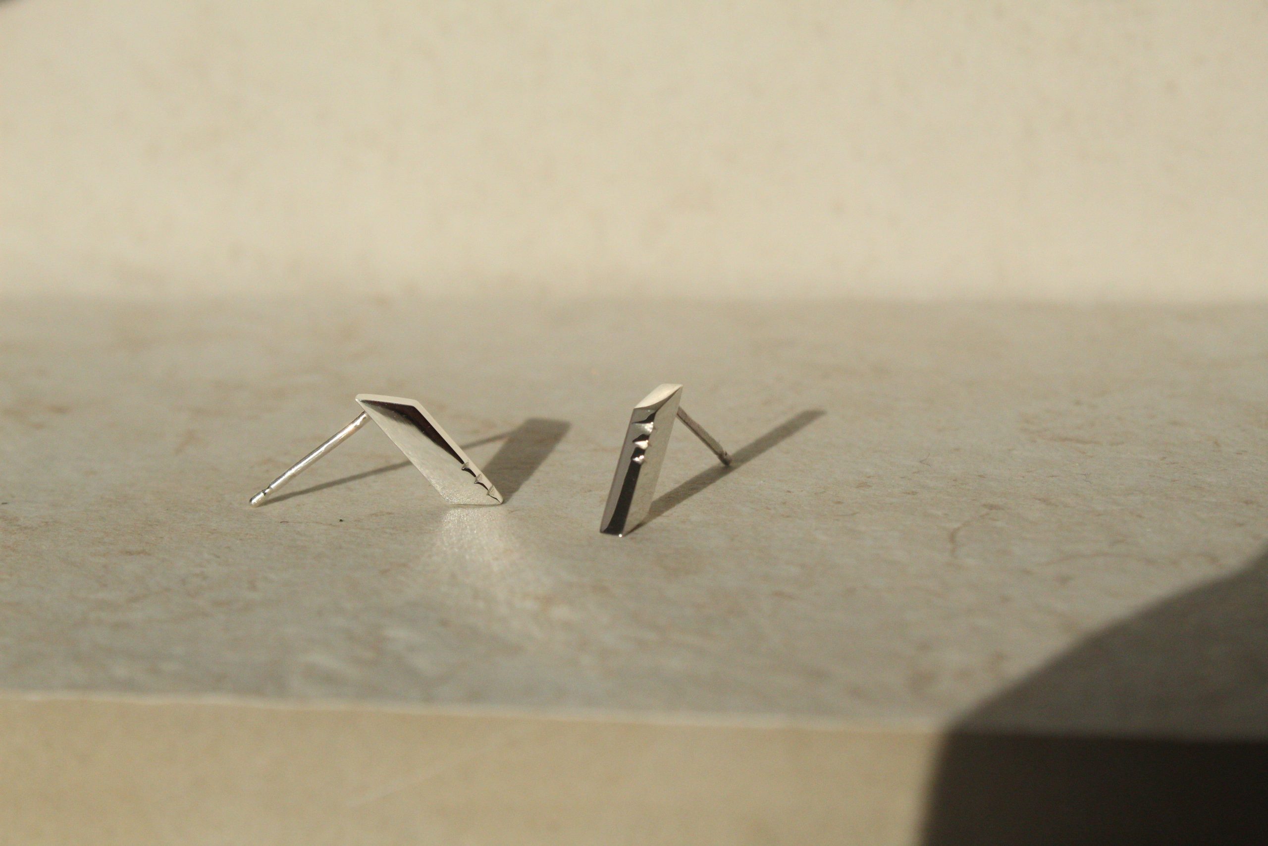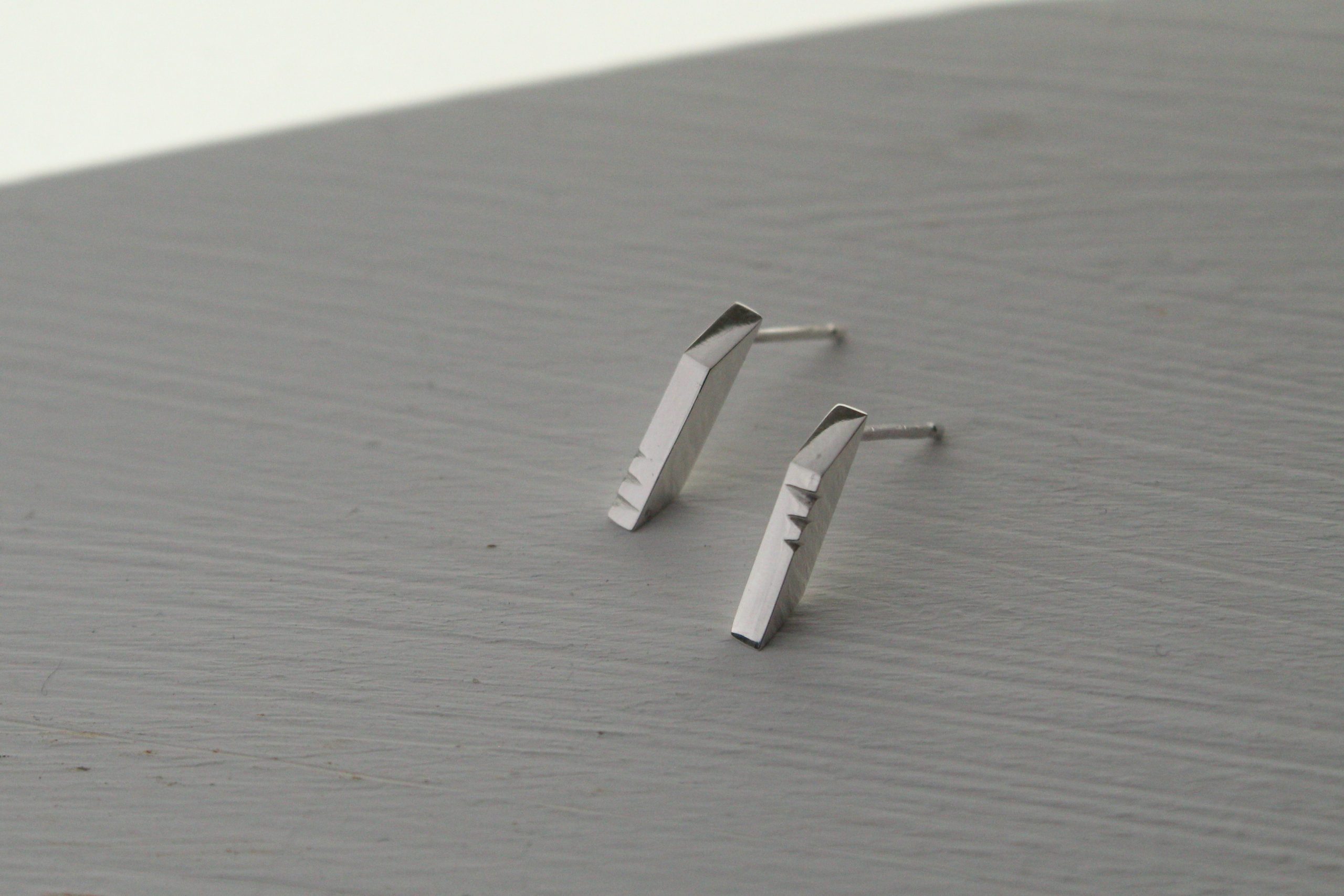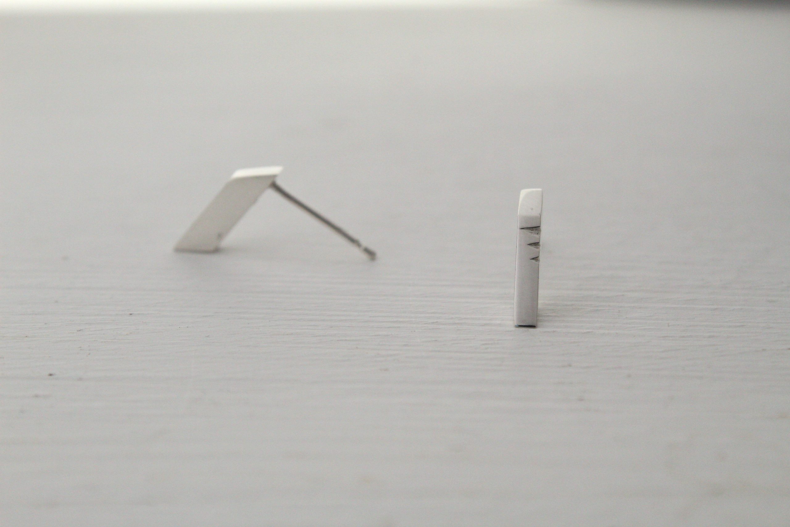 Handmade from recycled 925 sterling silver, polished to a high shine finish. Fastens with a sterling silver stud post and butterfly back. Dimensions are approx 13 x 2 x 3 mm.