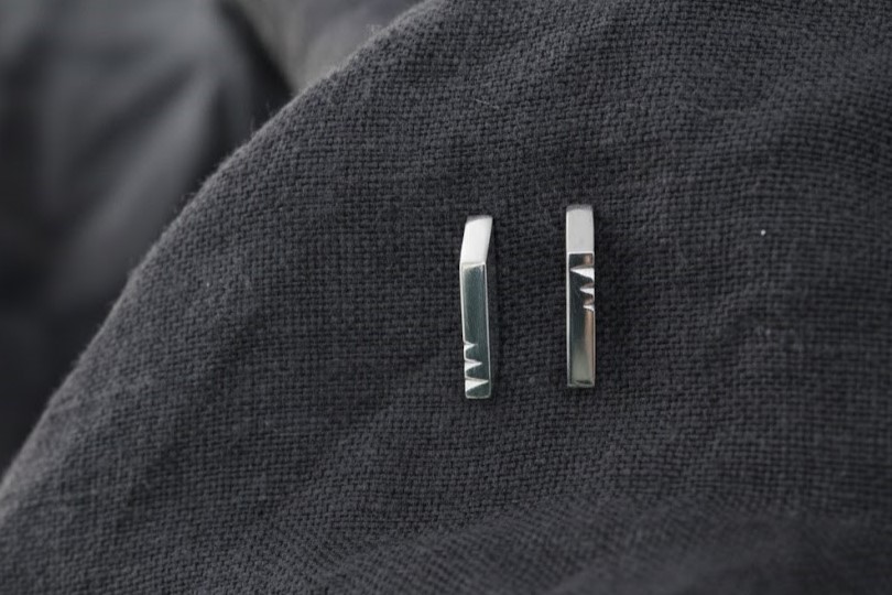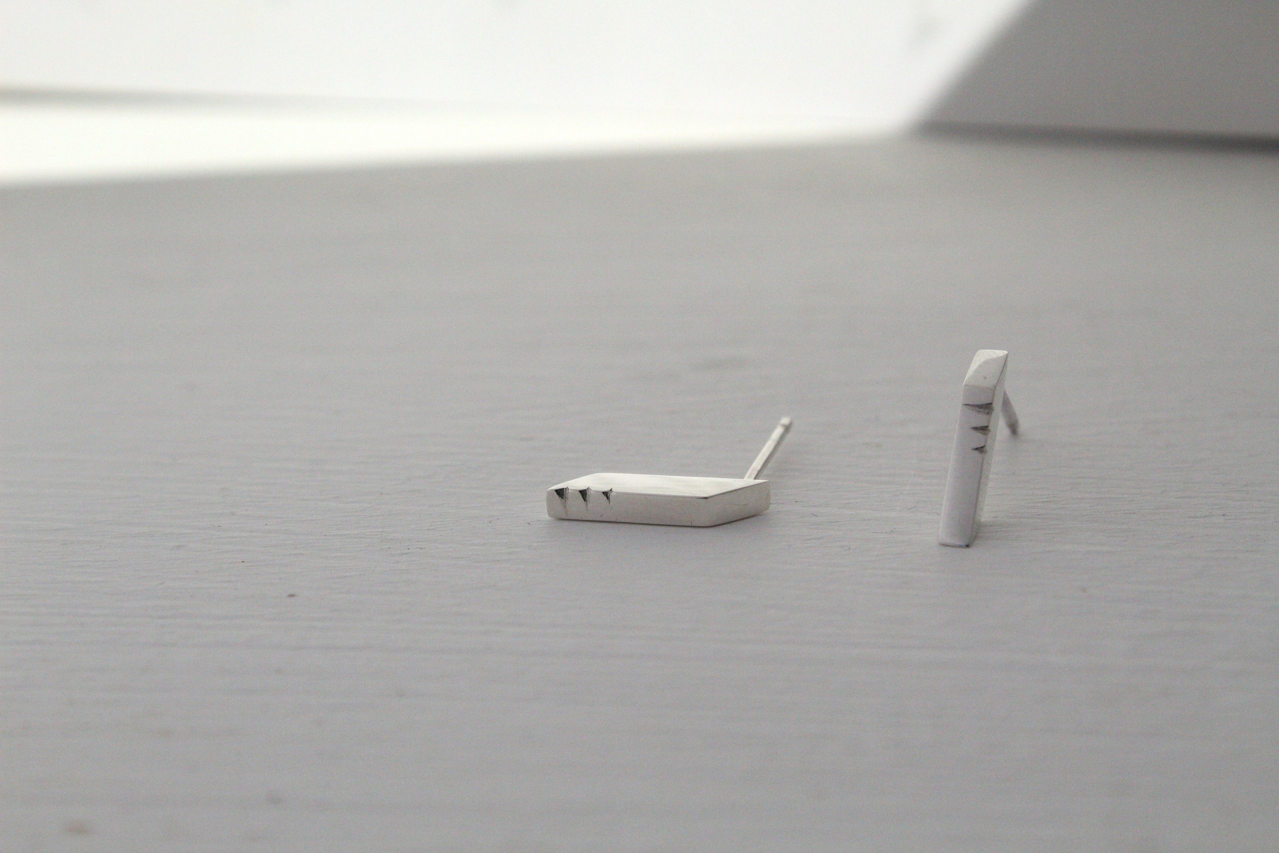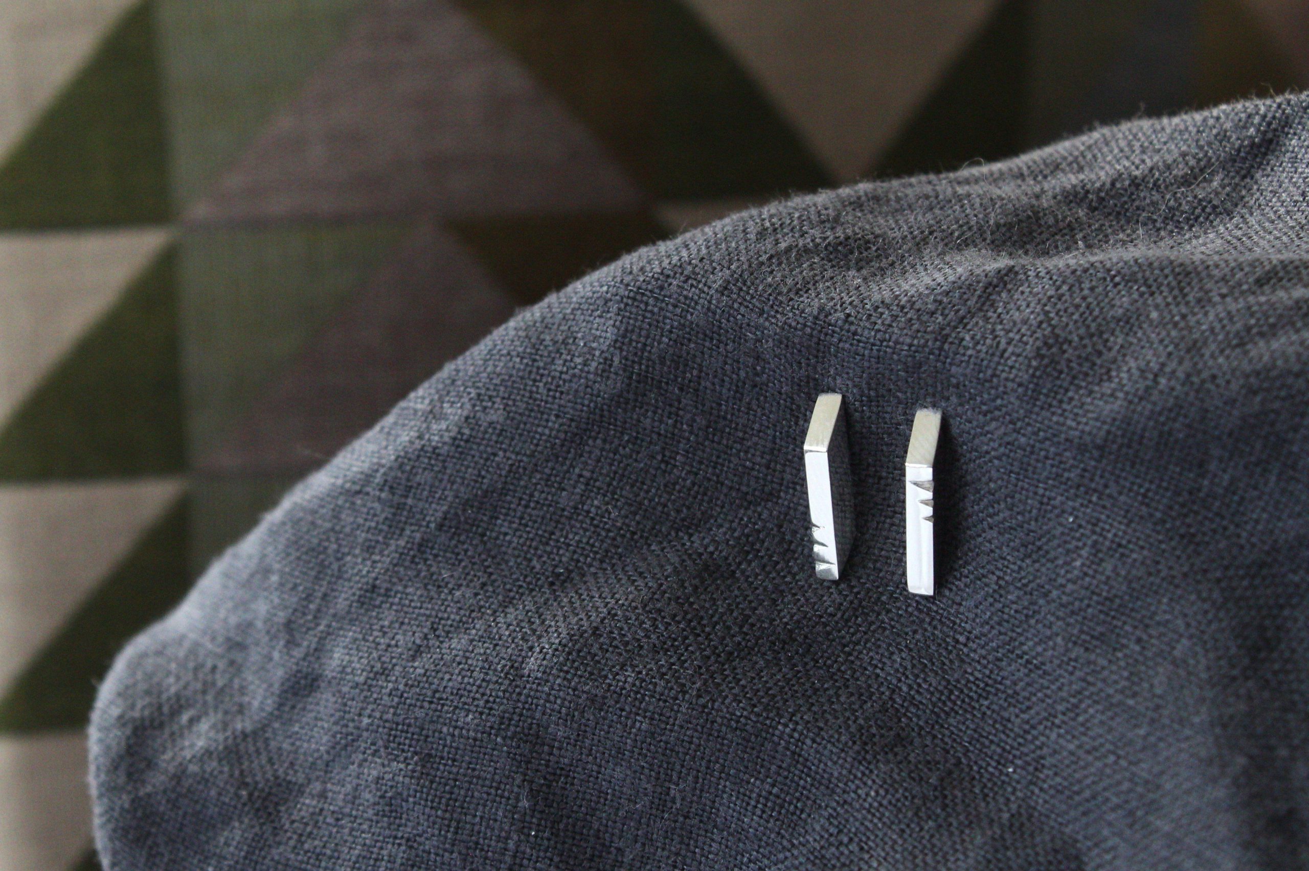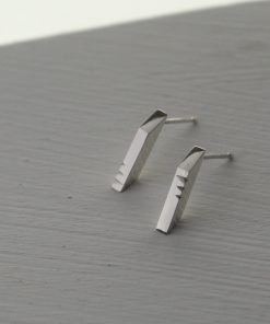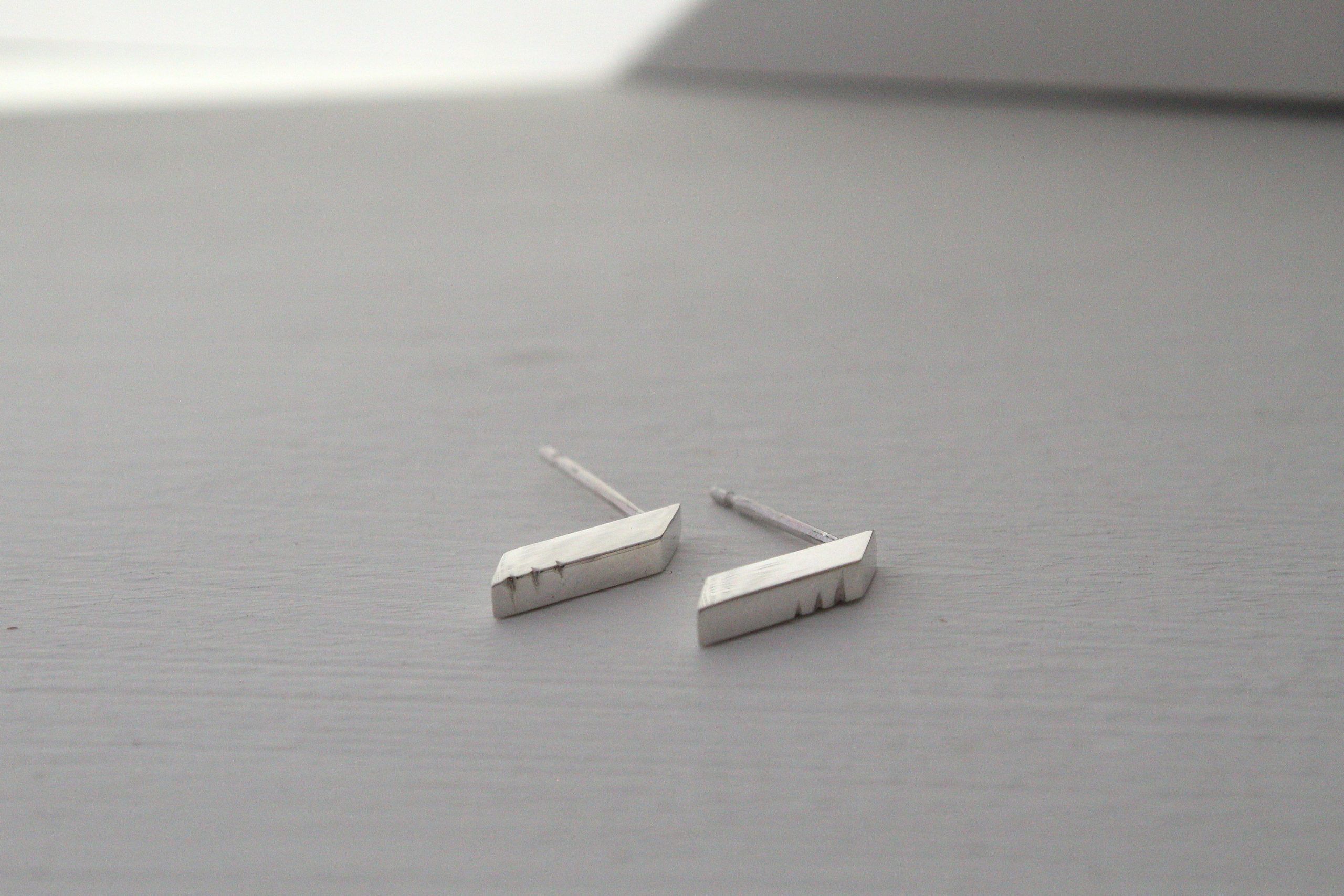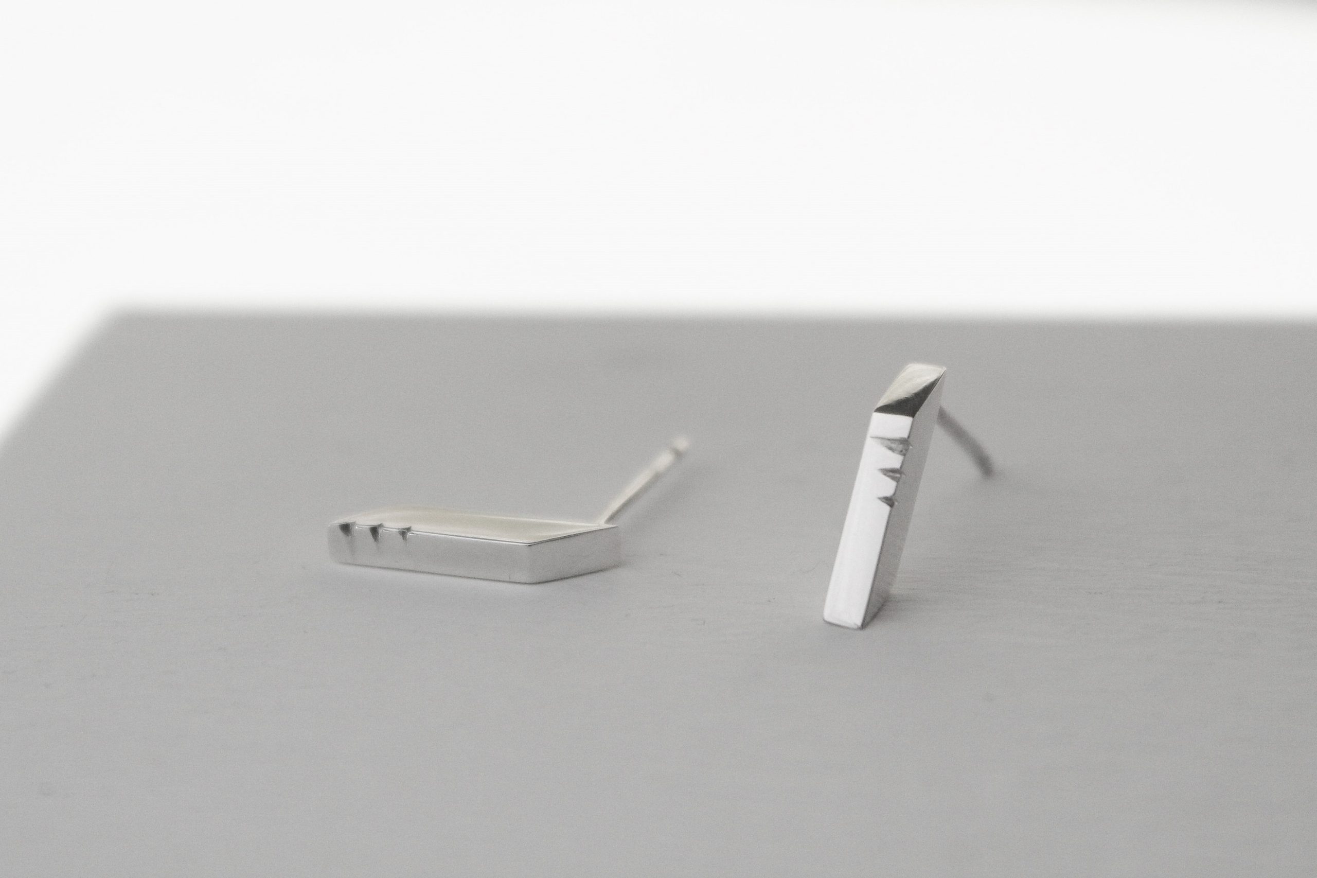 Handmade from recycled 925 sterling silver, polished to a high shine finish. Fastens with a sterling silver stud post and butterfly back. Dimensions are approx 13 x 2 x 3 mm.
